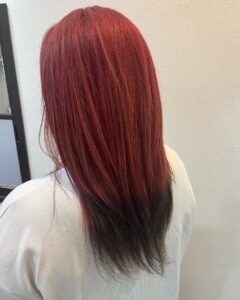 レッド系カラーに毛先はブラウンで✨