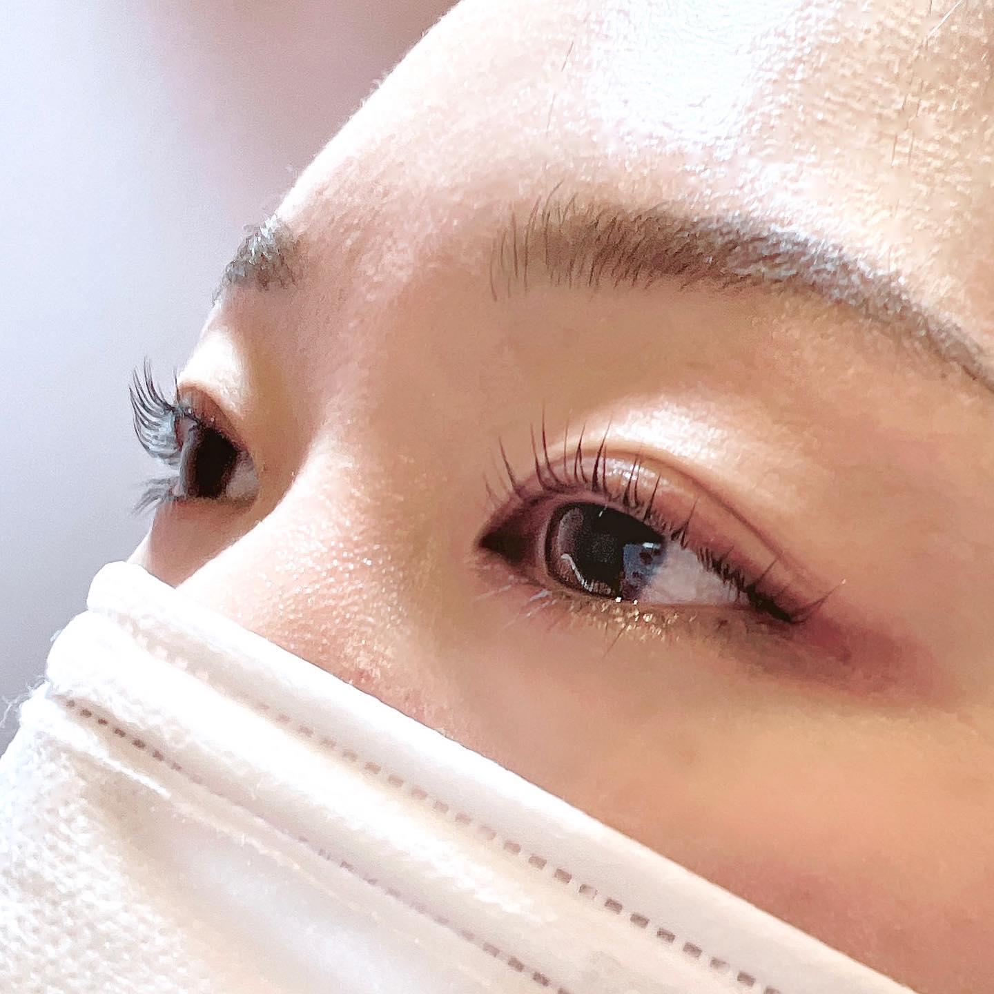 目頭から中央までまつ毛を立ち上げ目尻は流れるデザインです♥️