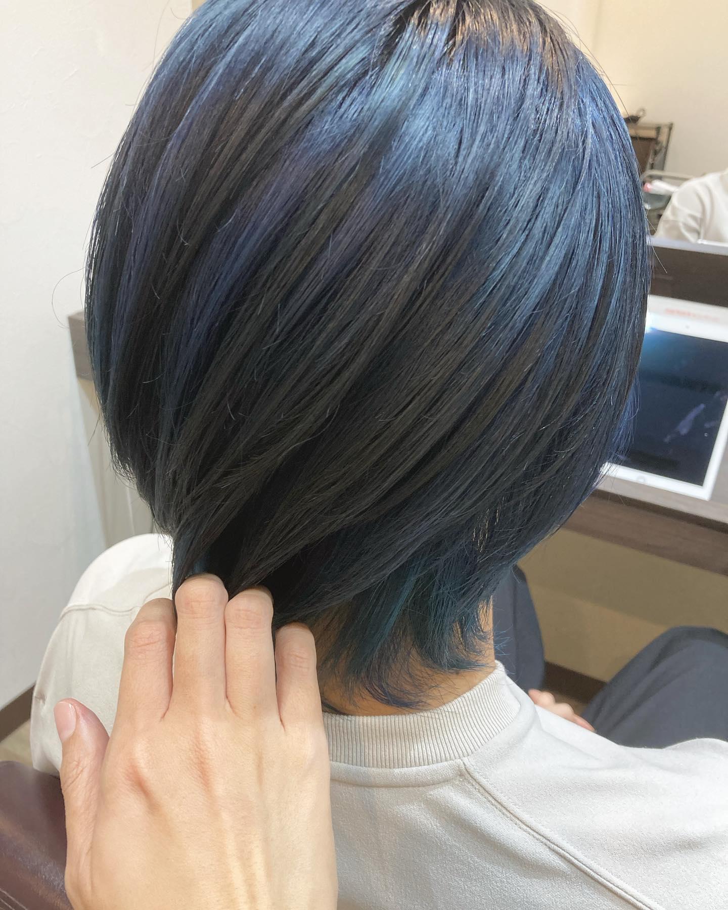 襟足は鮮やかな青で🌎