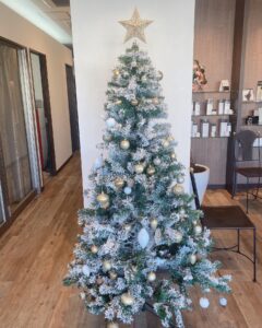 雪化粧の大きなツリーを飾りました🎄✨