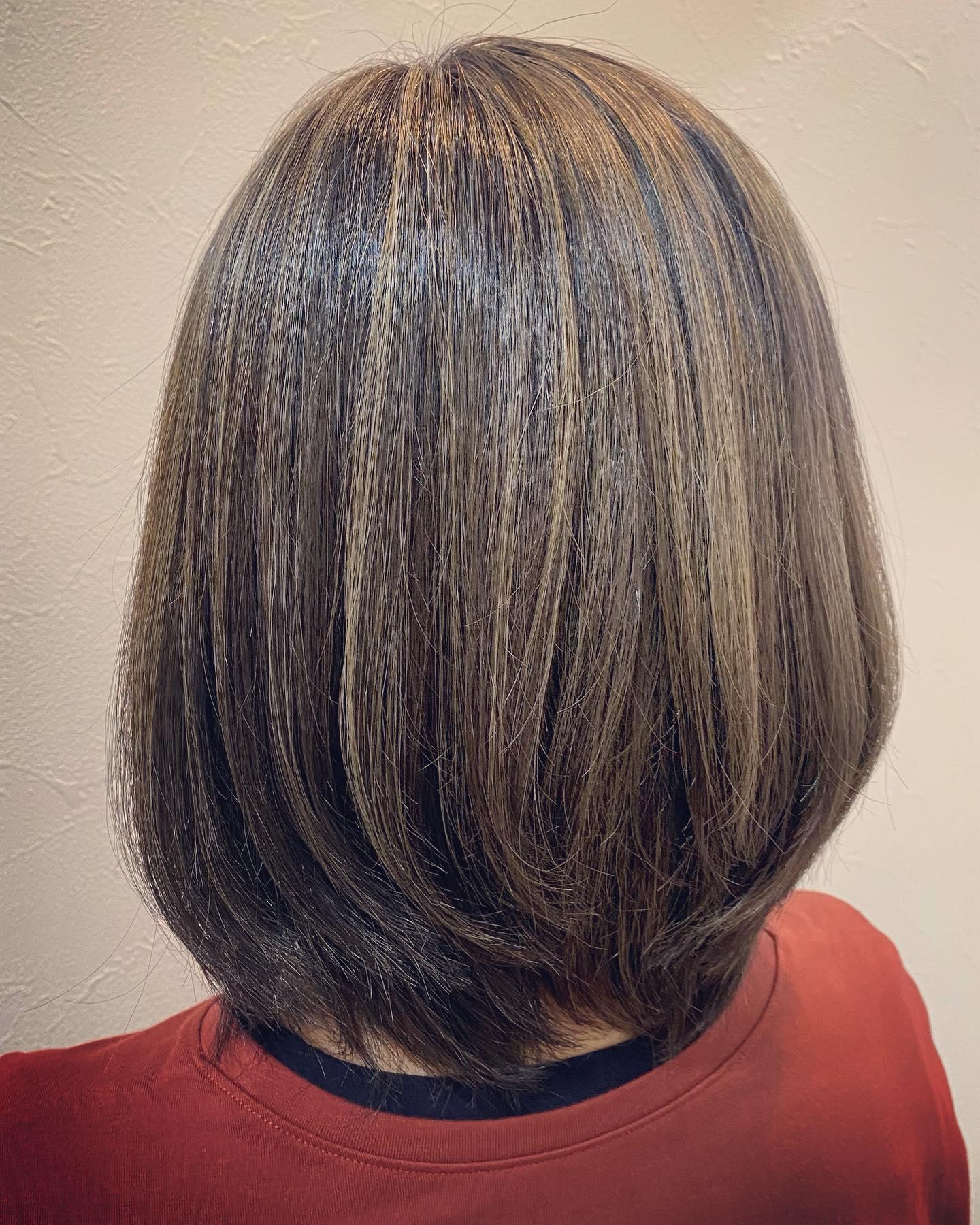 ハイライトで白髪をカバー くすみがでてツヤ感もアップしてます🫰 ・ ・ ・